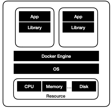 전통적인 가상화 기술과 달리, Docker는 OS 레벨에서 리소스를 공유하면서 애플리케이션과 필요한 라이브러리, 패키지 등을 컨테이너로 묶어 실행한다.