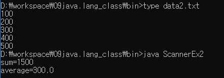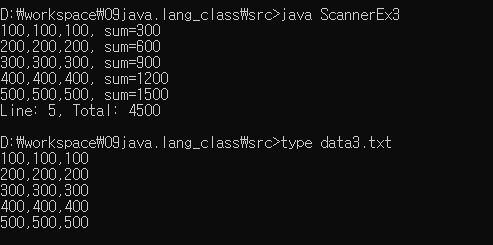 - 만일 구분자가 두 문자 이상이라면, Scanner나 String클래스의 split메서드를 사용해야 한다.