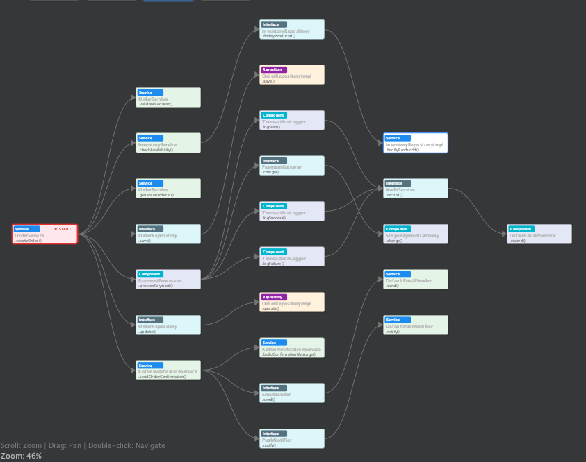 - 그래프 시각화: 특정 메서드에서 시작되는 콜 플로우를 한 눈에 파악